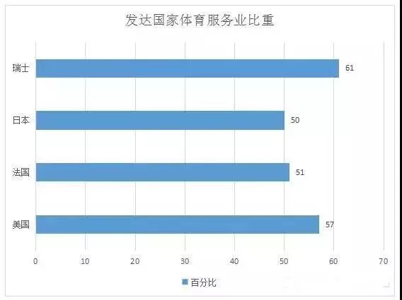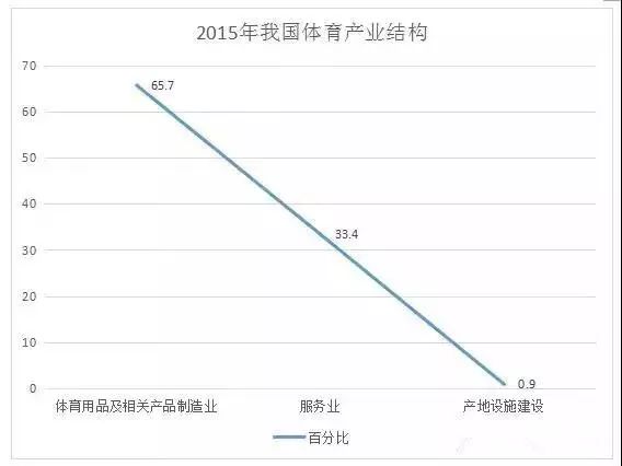 從目前體育產(chǎn)業(yè)結(jié)構(gòu)看,與發(fā)達國家相比,我國體育服務(wù)業(yè)占比偏低。目前,我國體育用品占比達到65.7%,體育服務(wù)業(yè)占比僅為33.4%。美國體育產(chǎn)業(yè)結(jié)構(gòu)中,體育服務(wù)比重高達57%,體育用品制造僅占28%。