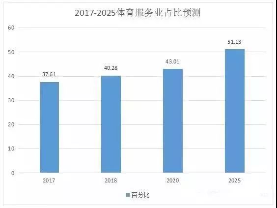 2025年,中國體育服務(wù)業(yè)在整個體育產(chǎn)業(yè)中占比將達到50%,體育服務(wù)業(yè)總規(guī)模將接近2萬億元。