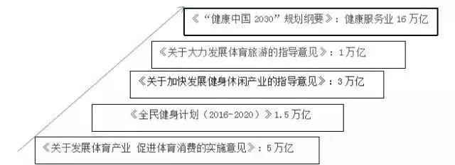 政策發(fā)力:《關(guān)于發(fā)展體育產(chǎn)業(yè) 促進體育消費的實施意見》、《全民健身計劃(2016-2020)》、《健康中國2030規(guī)劃綱要》、《關(guān)于加快發(fā)展健身休閑產(chǎn)業(yè)的指導(dǎo)意見》、《關(guān)于大力發(fā)展體育旅游的指導(dǎo)意見》、等等,所有政策都把體育產(chǎn)業(yè)作為推動中國經(jīng)濟轉(zhuǎn)型升級的重要力量。