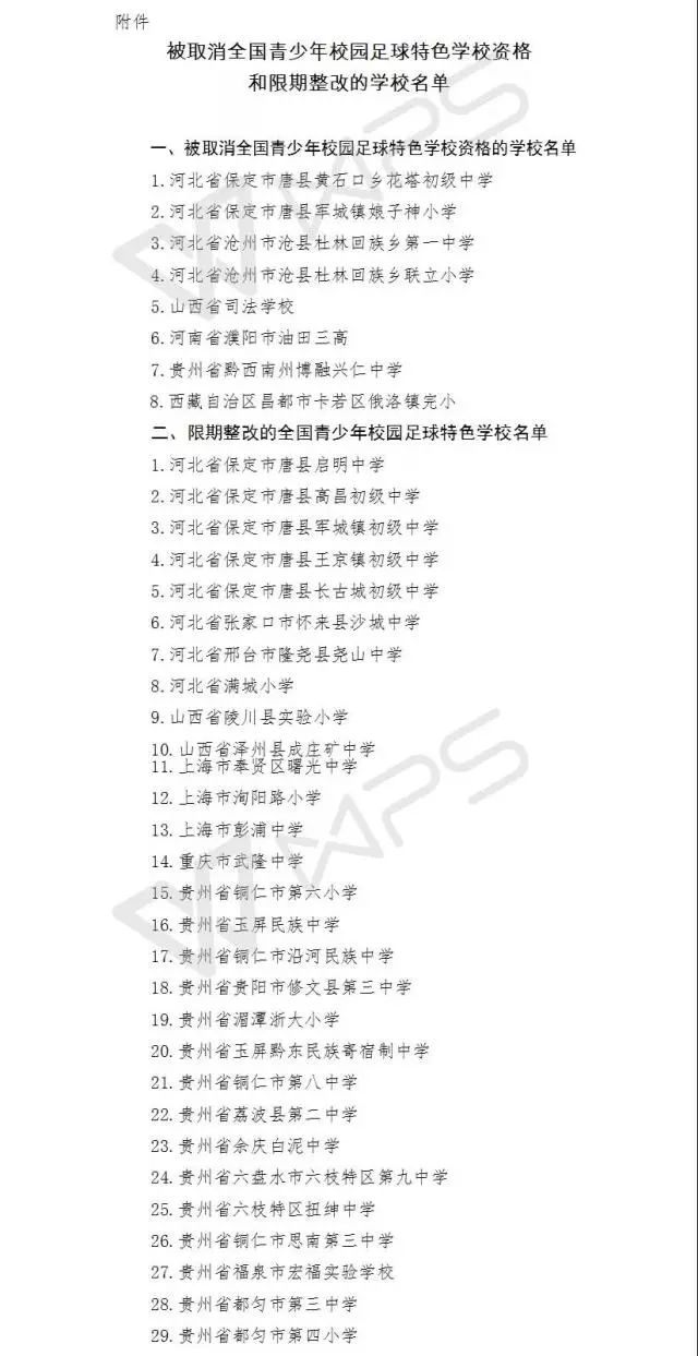 附件:被取消全國青少年校園足球特色學校資格和限期整改的學校名單